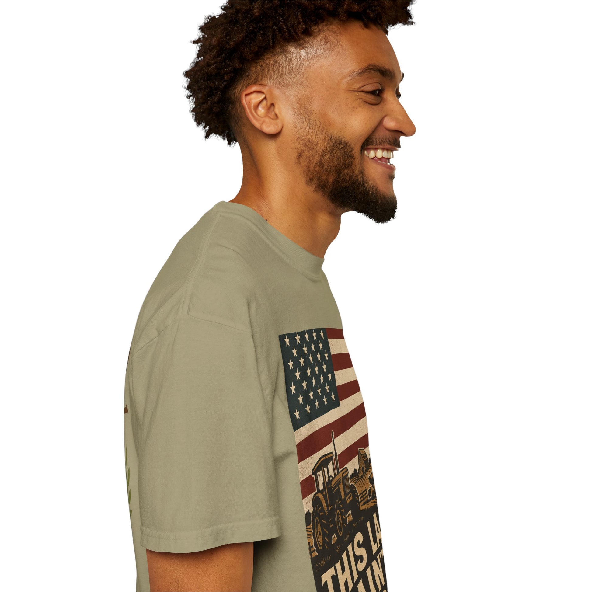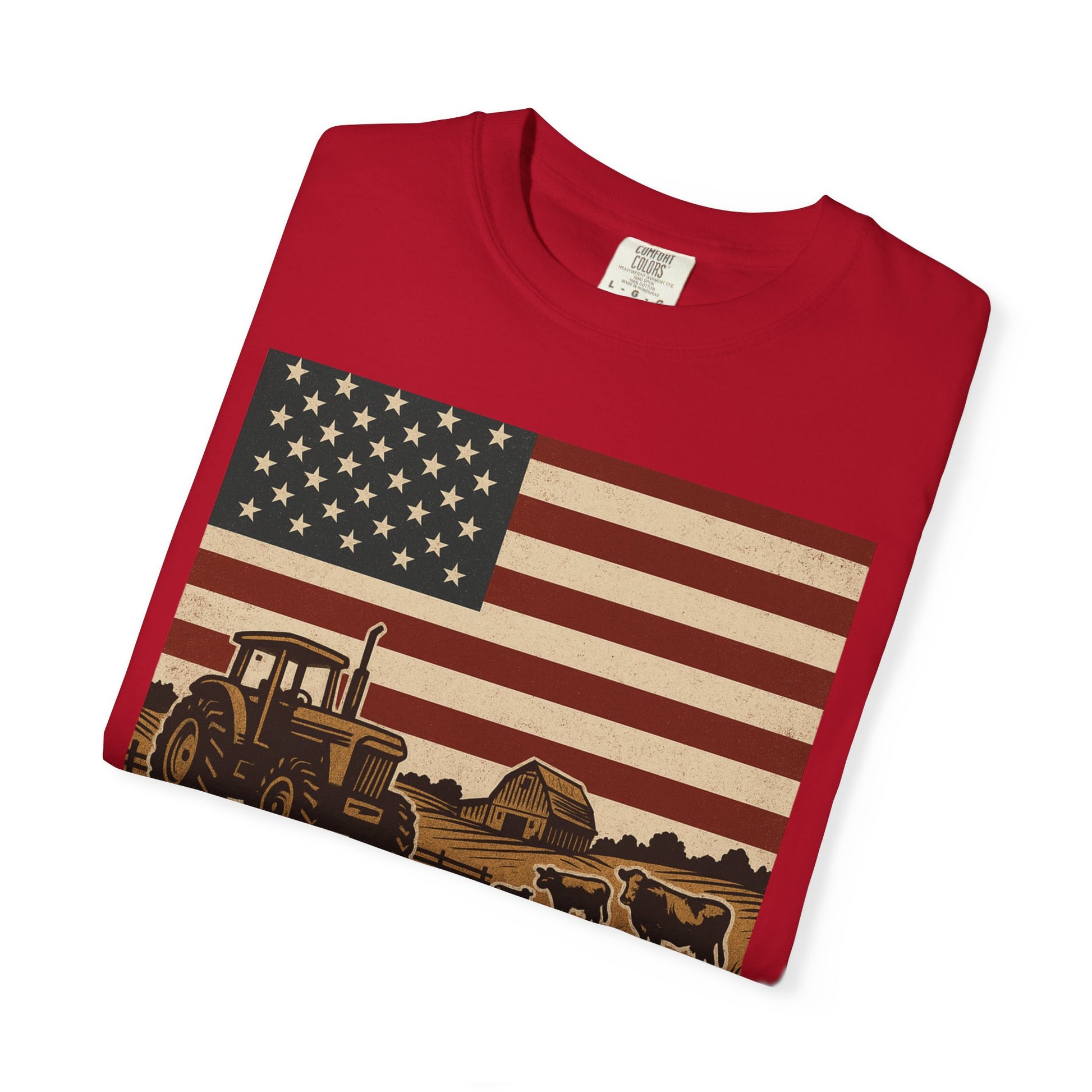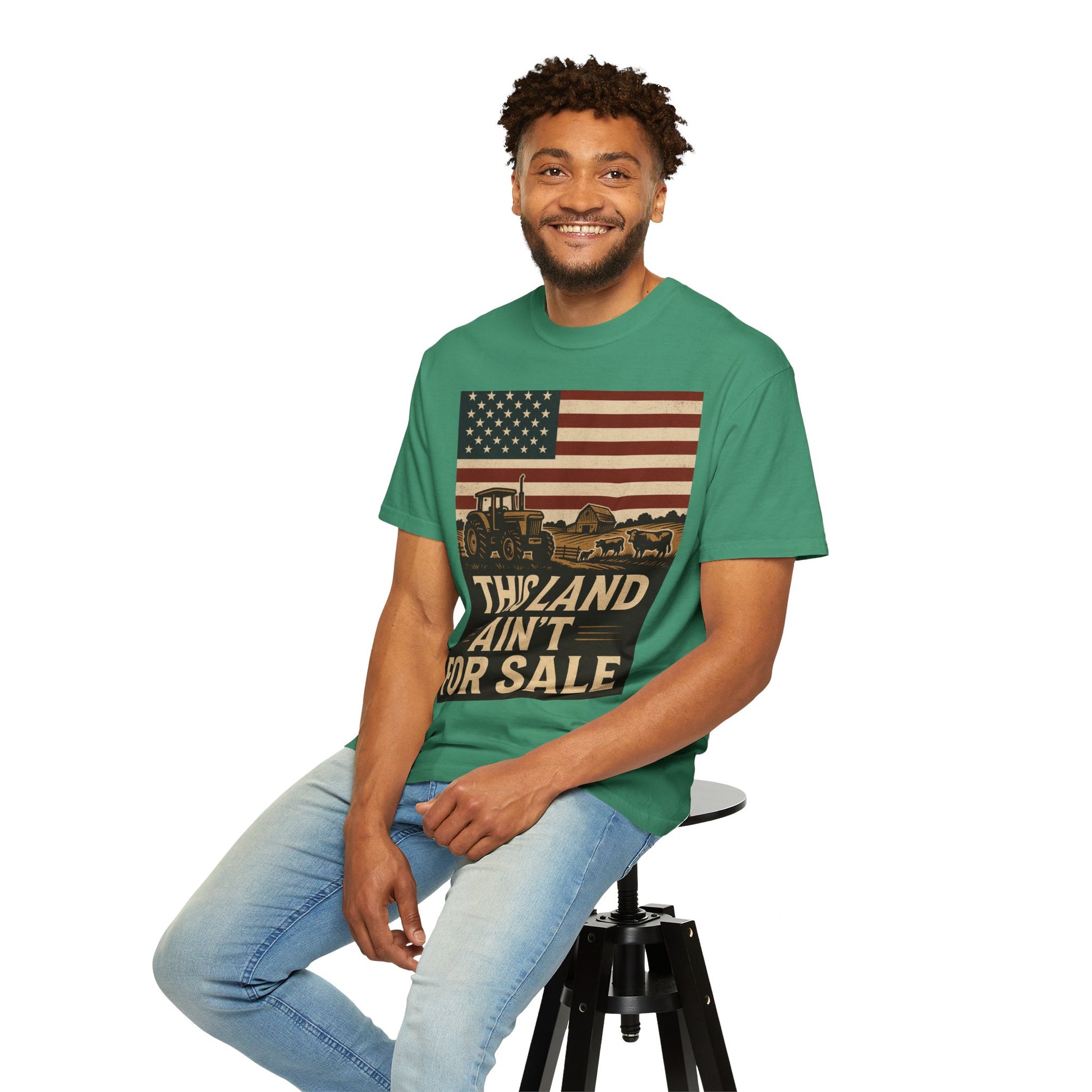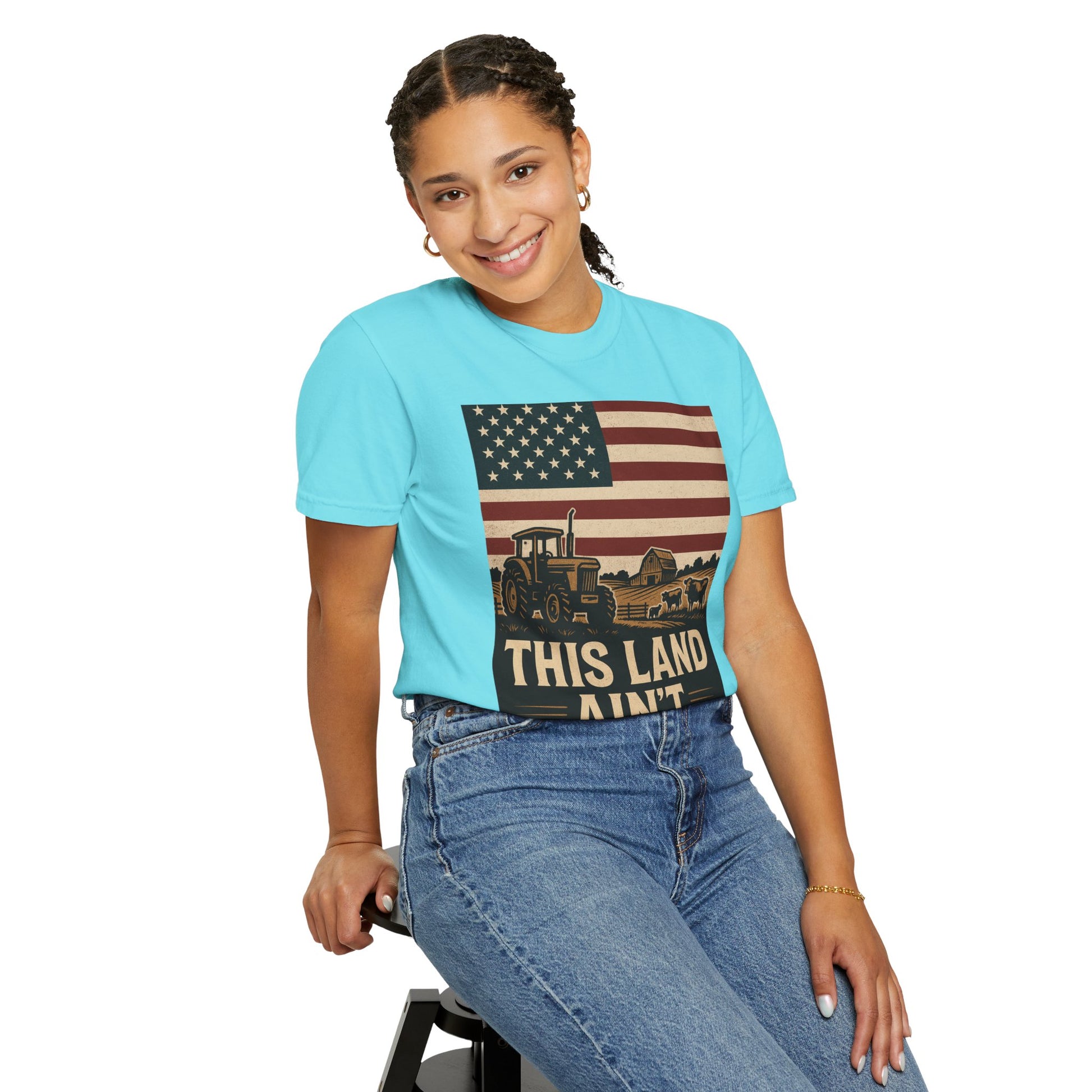 Introducing a versatile unisex garment-dyed t-shirt that captures both comfort and style. This shirt exudes a relaxed vibe, making it perfect for casual outings or semi-formal gatherings. Its unique garment-dyed fabric provides a soft, worn-in feel, while the classic crew neckline and relaxed fit enhance its appeal. Ideal for outdoor enthusiasts, farmers, or anyone who appreciates a blend of rugged and comfortable attire, this shirt is suitable for various holidays and events such as backyard barbecues, family reunions, and patriotic celebrations. Wear it proudly during Labor Day, Independence Day, or whenever you want to show off your love for land and home.