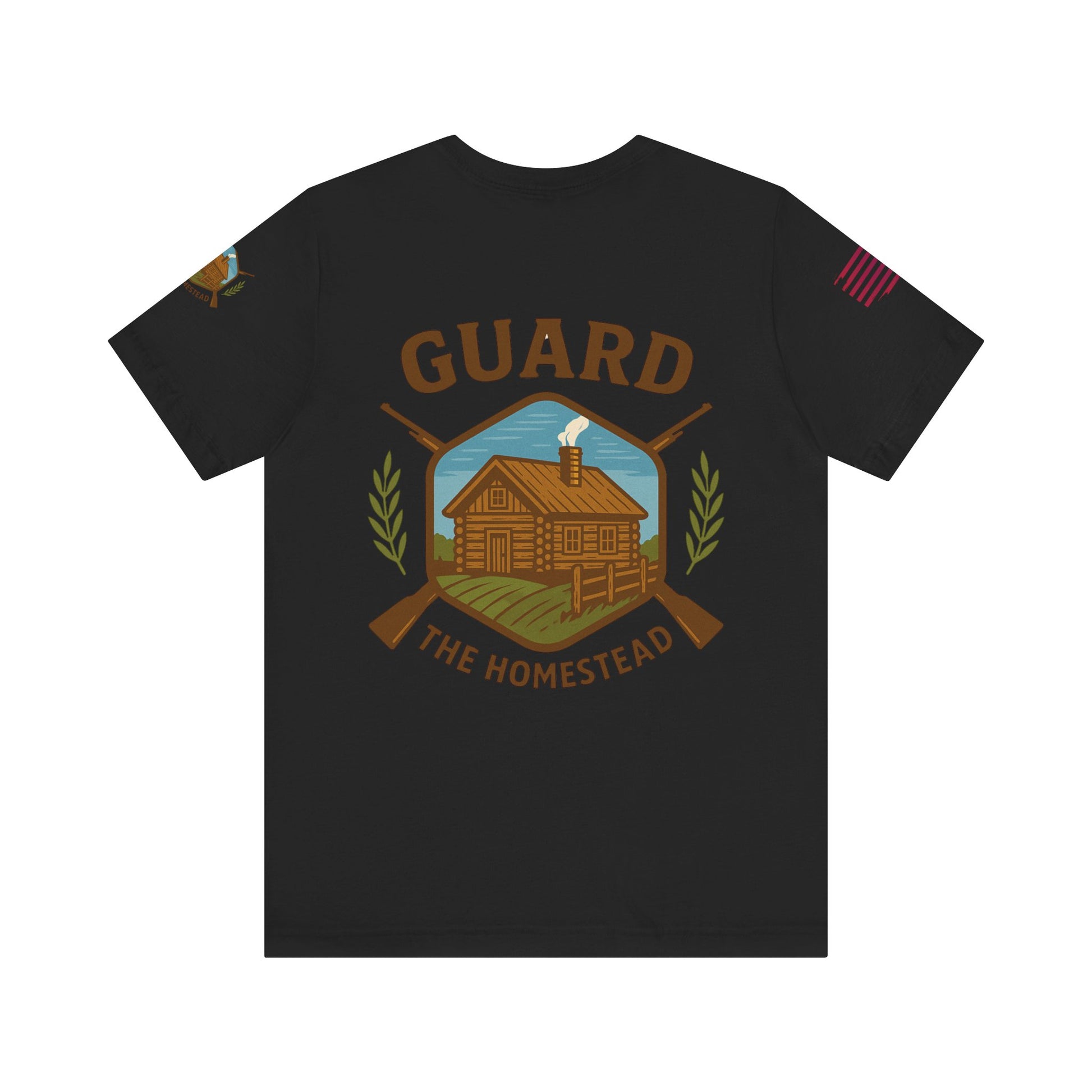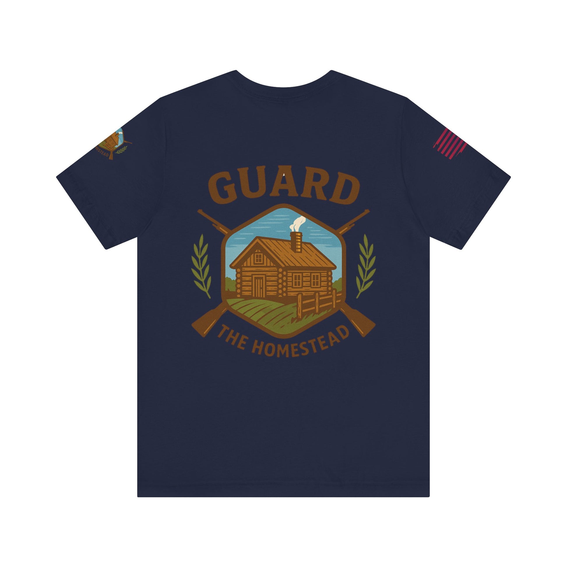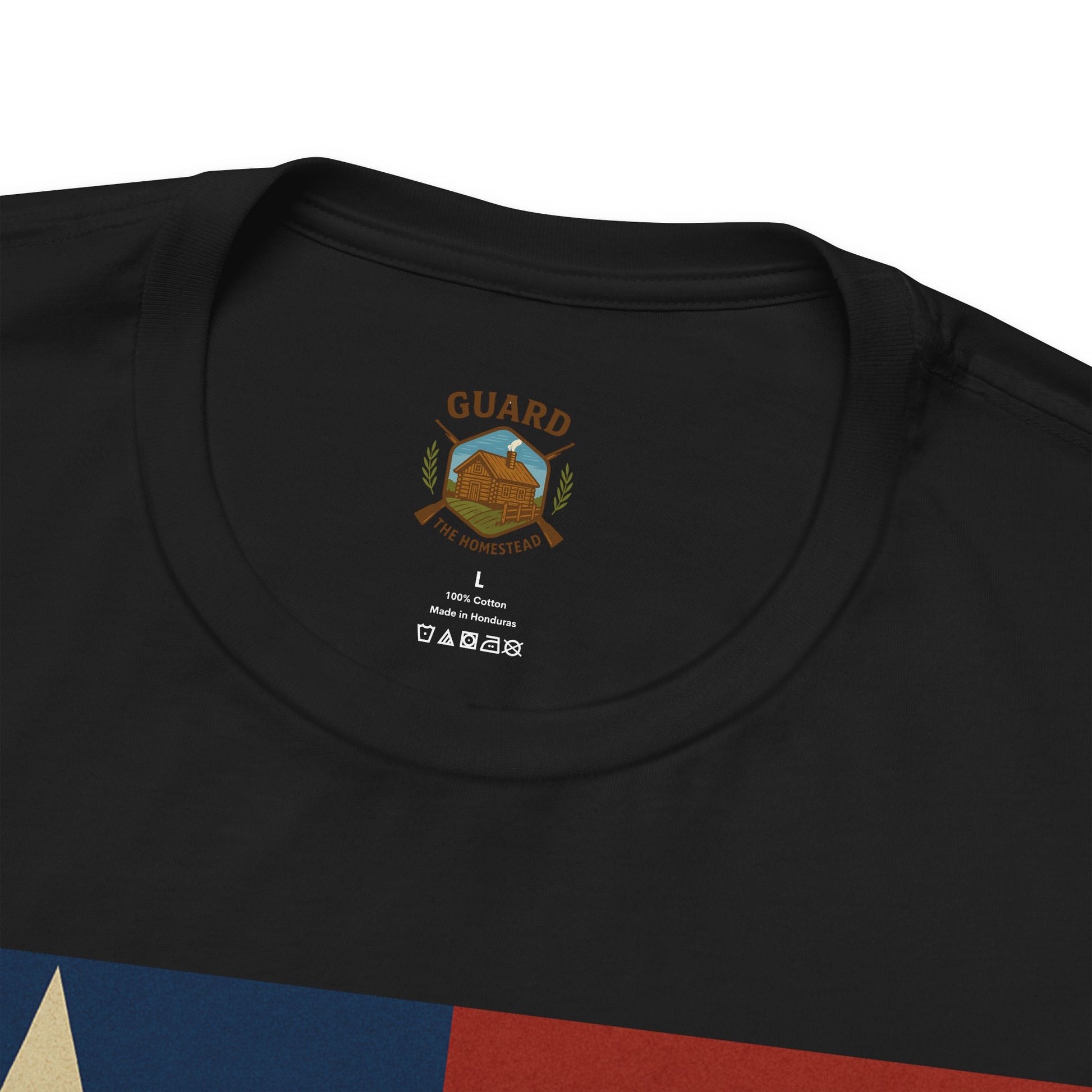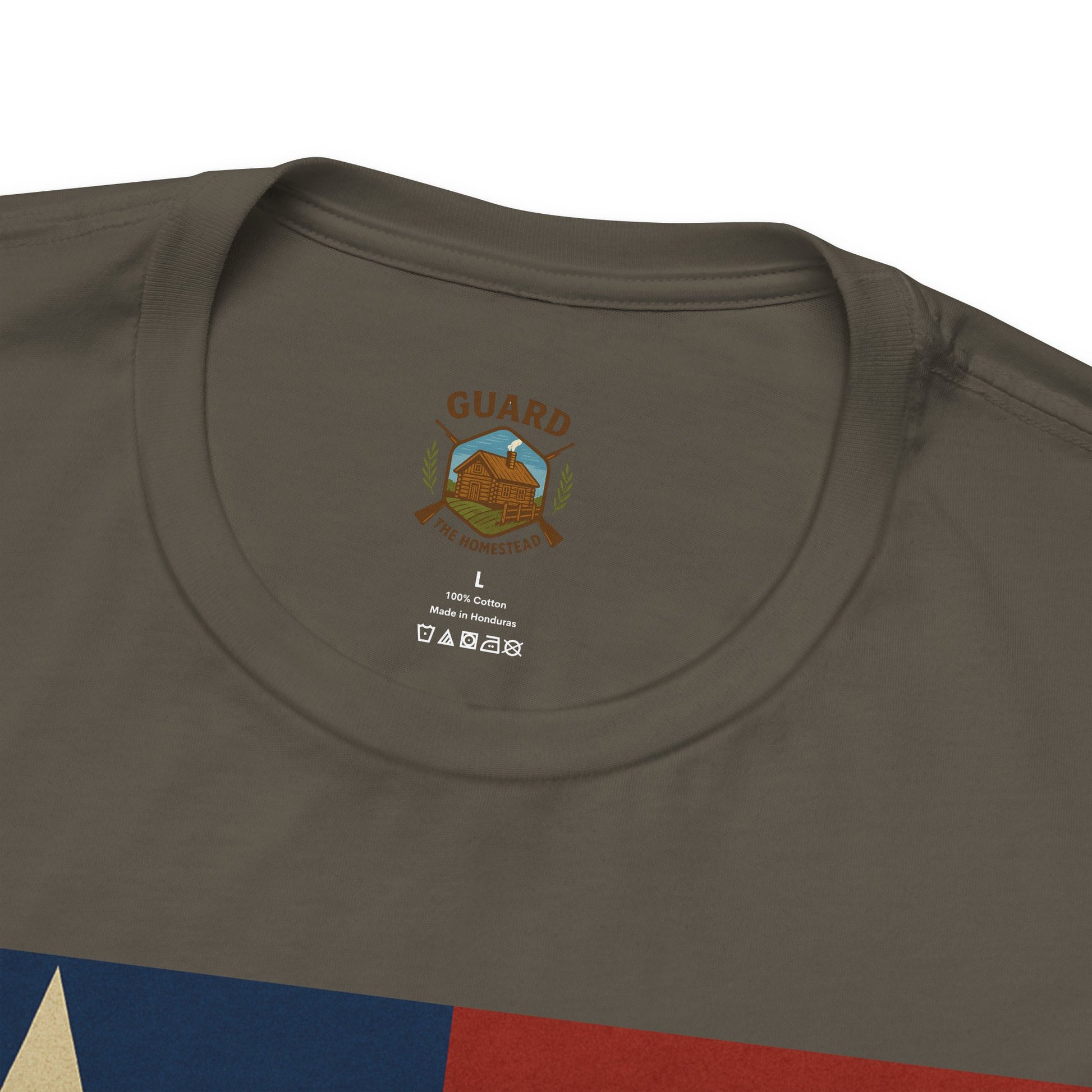 Make a bold statement of faith, grit, and rural pride with the “Live Simply, Texas Strong” t-shirt featuring a rustic barn over the Texas flag and a military-style American flag on the sleeve. Perfect for those who love Texas and want to show their state and country pride. Ideal for casual wear and patriotic holidays.