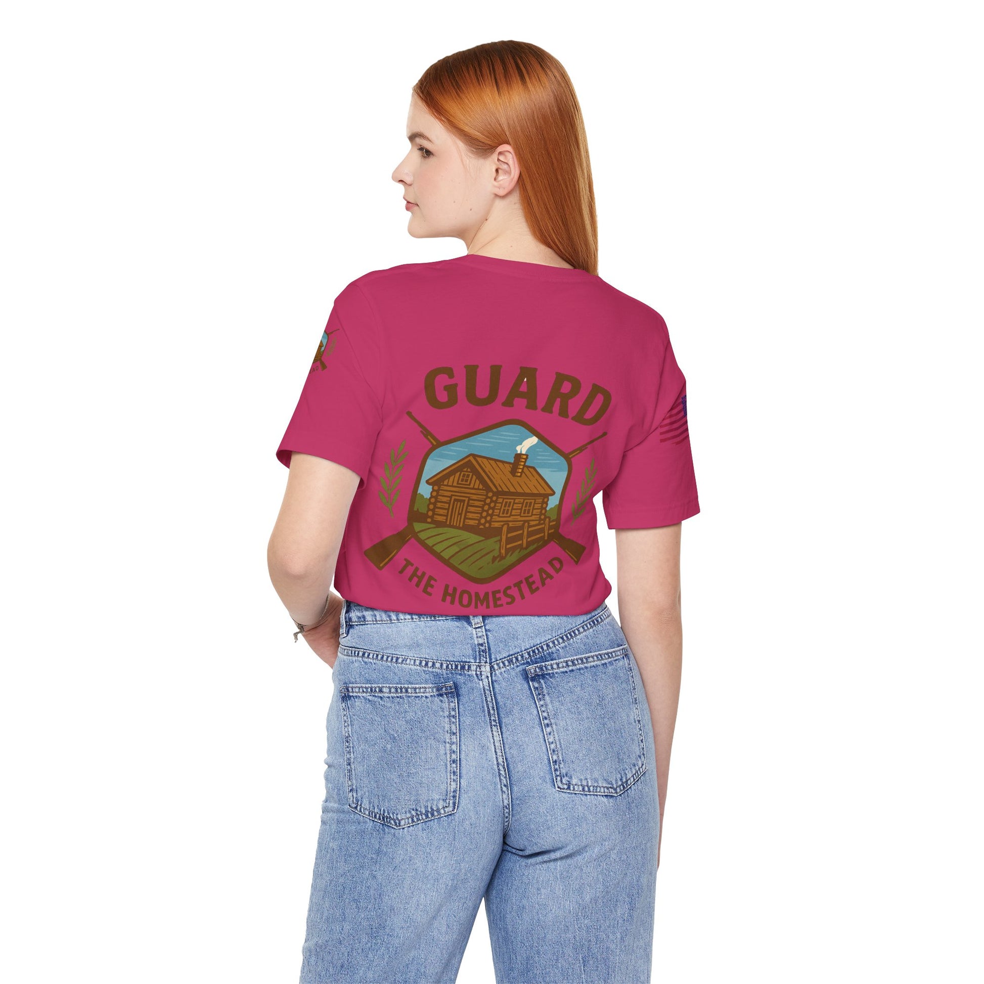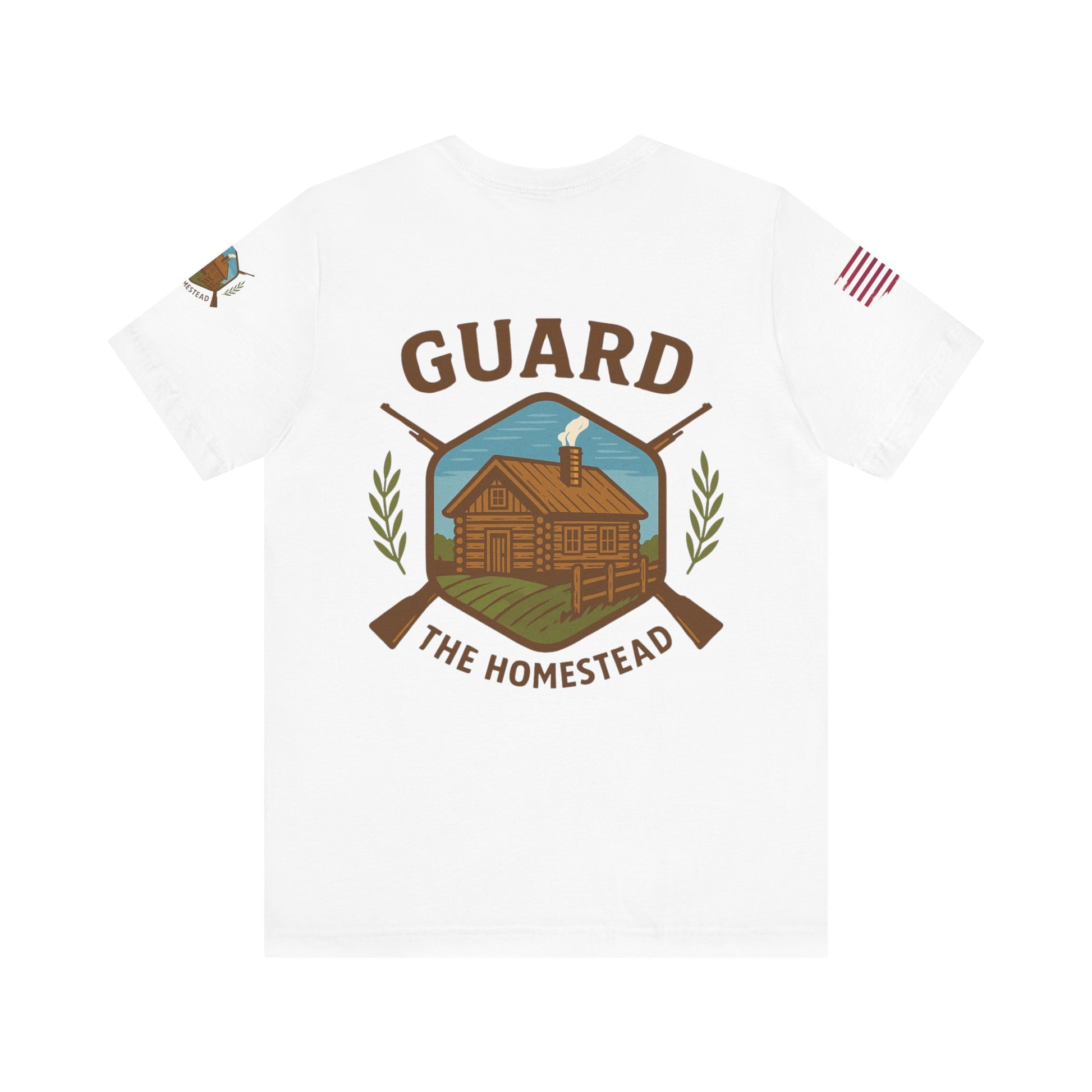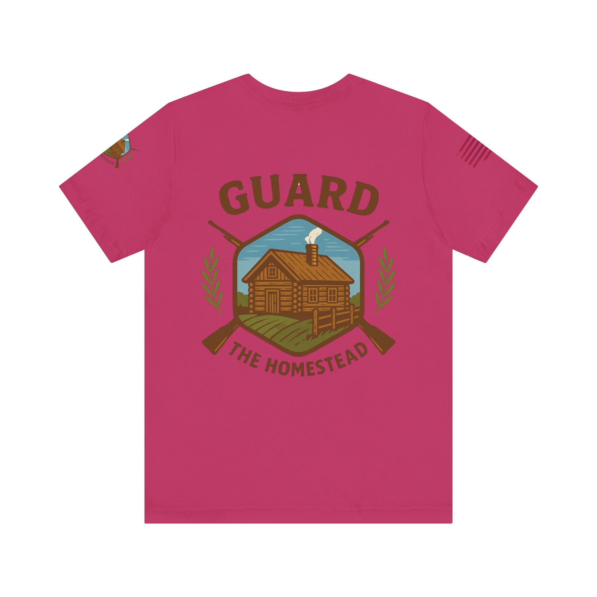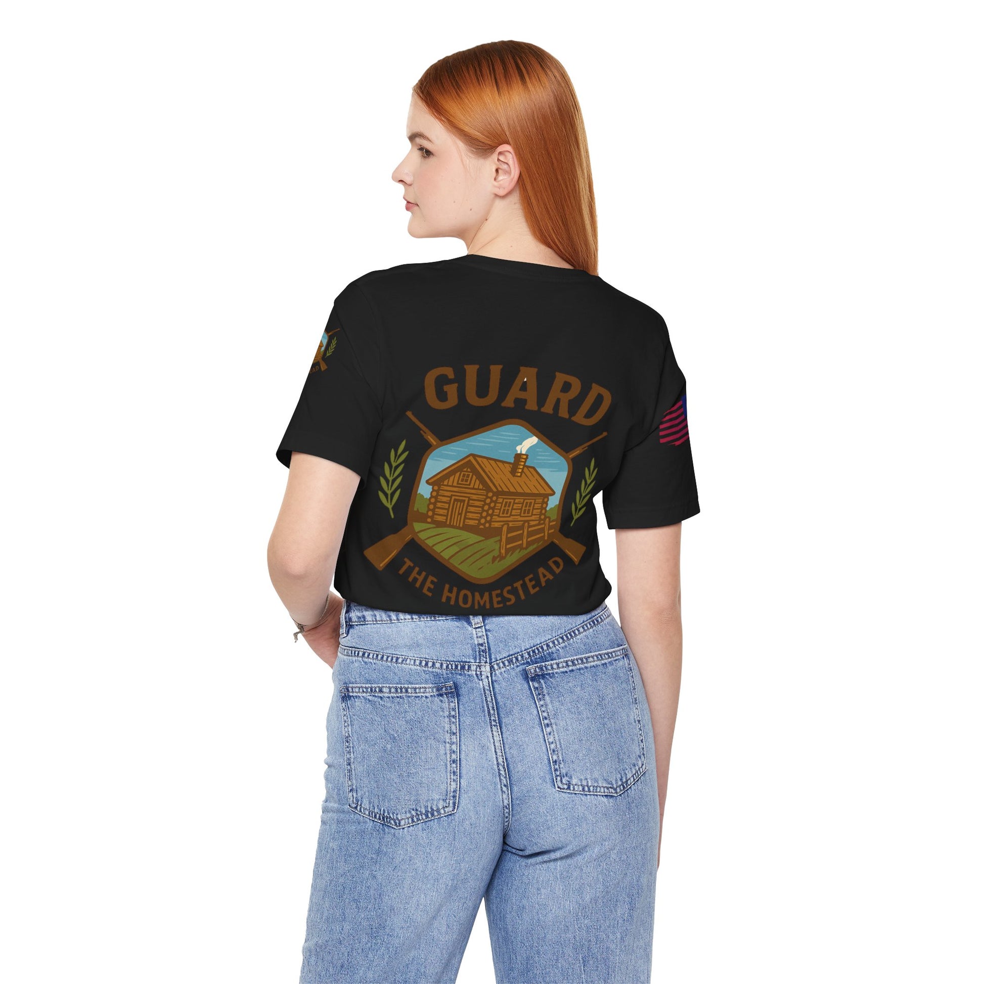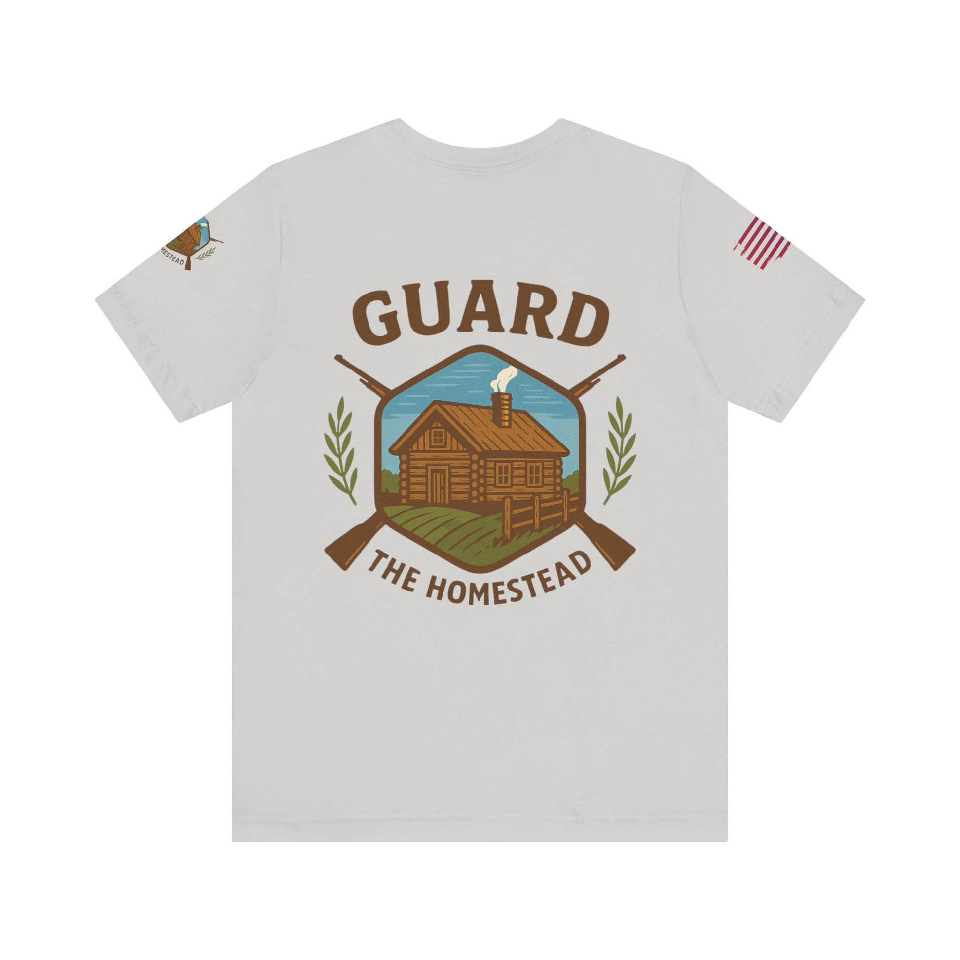 Make a bold statement of faith, grit, and rural pride with the “Live Simply, Texas Strong” t-shirt featuring a rustic barn over the Texas flag and a military-style American flag on the sleeve. Perfect for those who love Texas and want to show their state and country pride. Ideal for casual wear and patriotic holidays.