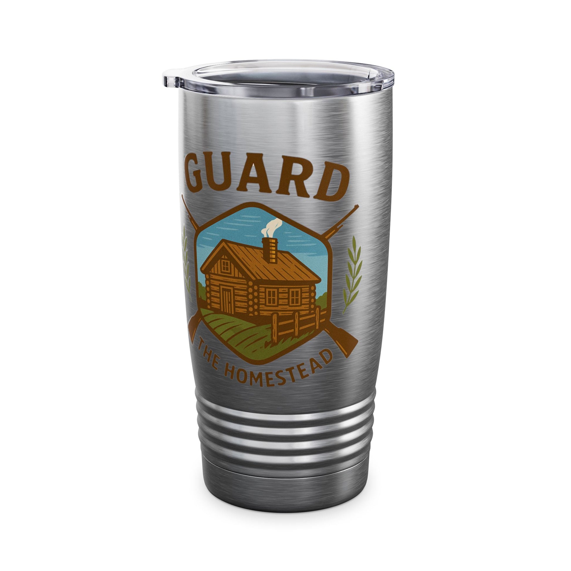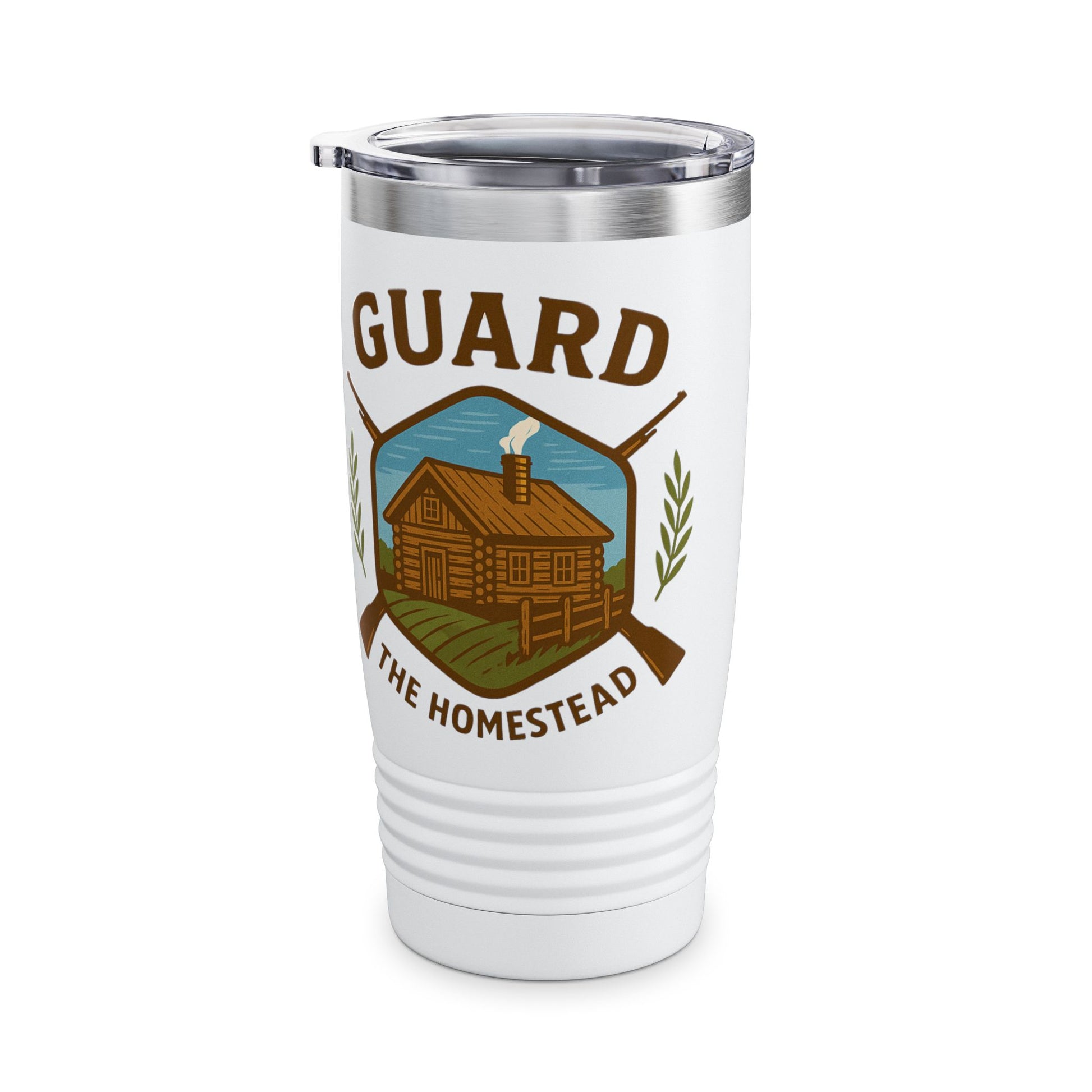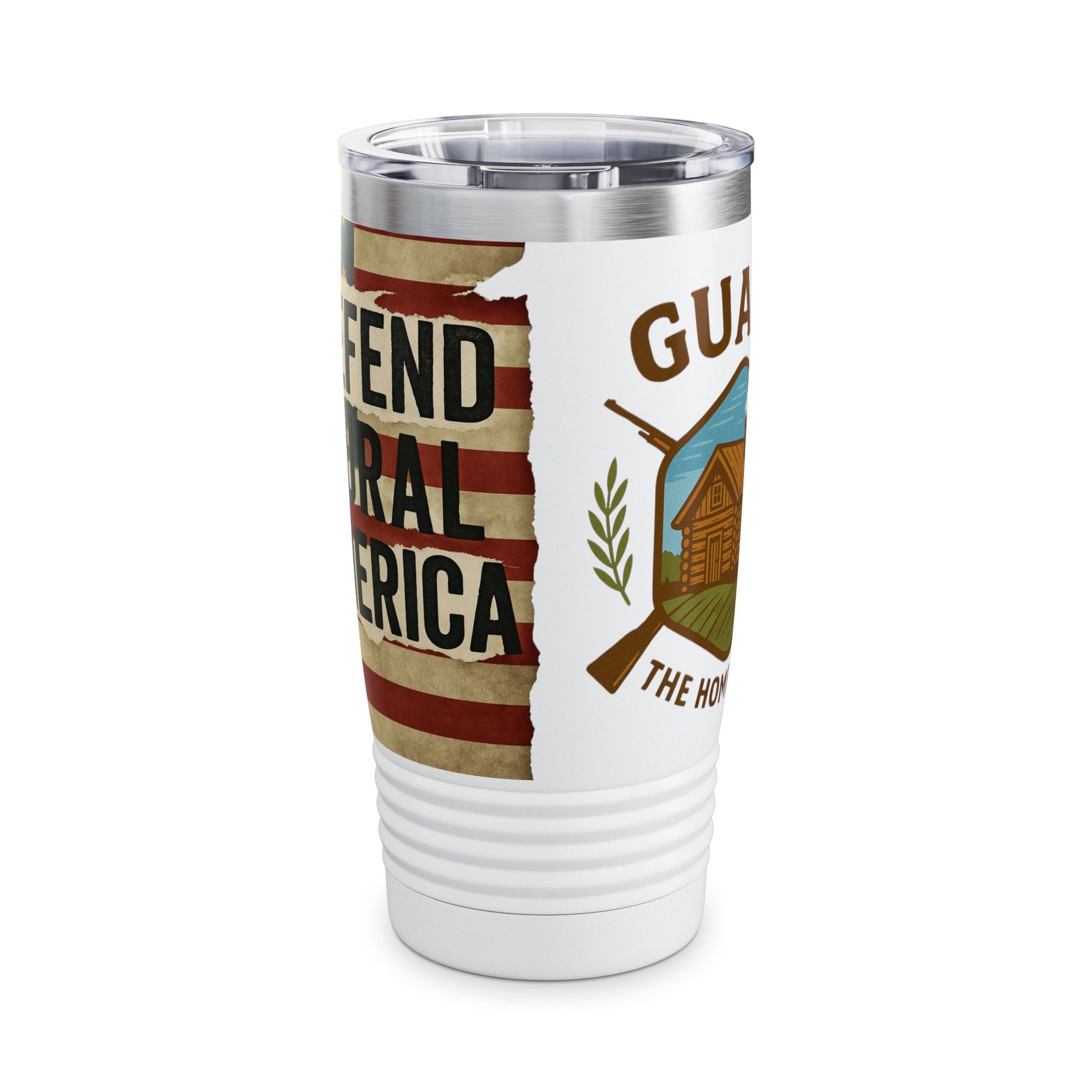 Defend Rural America with Guard the Homestead Logo Tumbler, 20oz, designed to keep your drinks warm for up to 12 hours and cold for up to 24 hours. Perfect for those who appreciate rural living and want to show their support. Great for rural enthusiasts, farmers, homesteaders, and those who enjoy outdoor activities. Ideal for holidays, celebrations, and occasions celebrating rural life and patriotism.