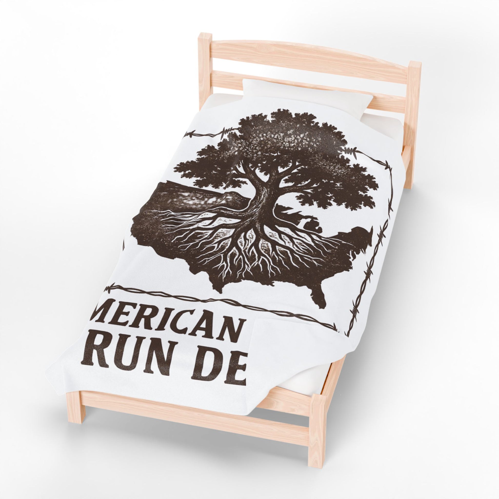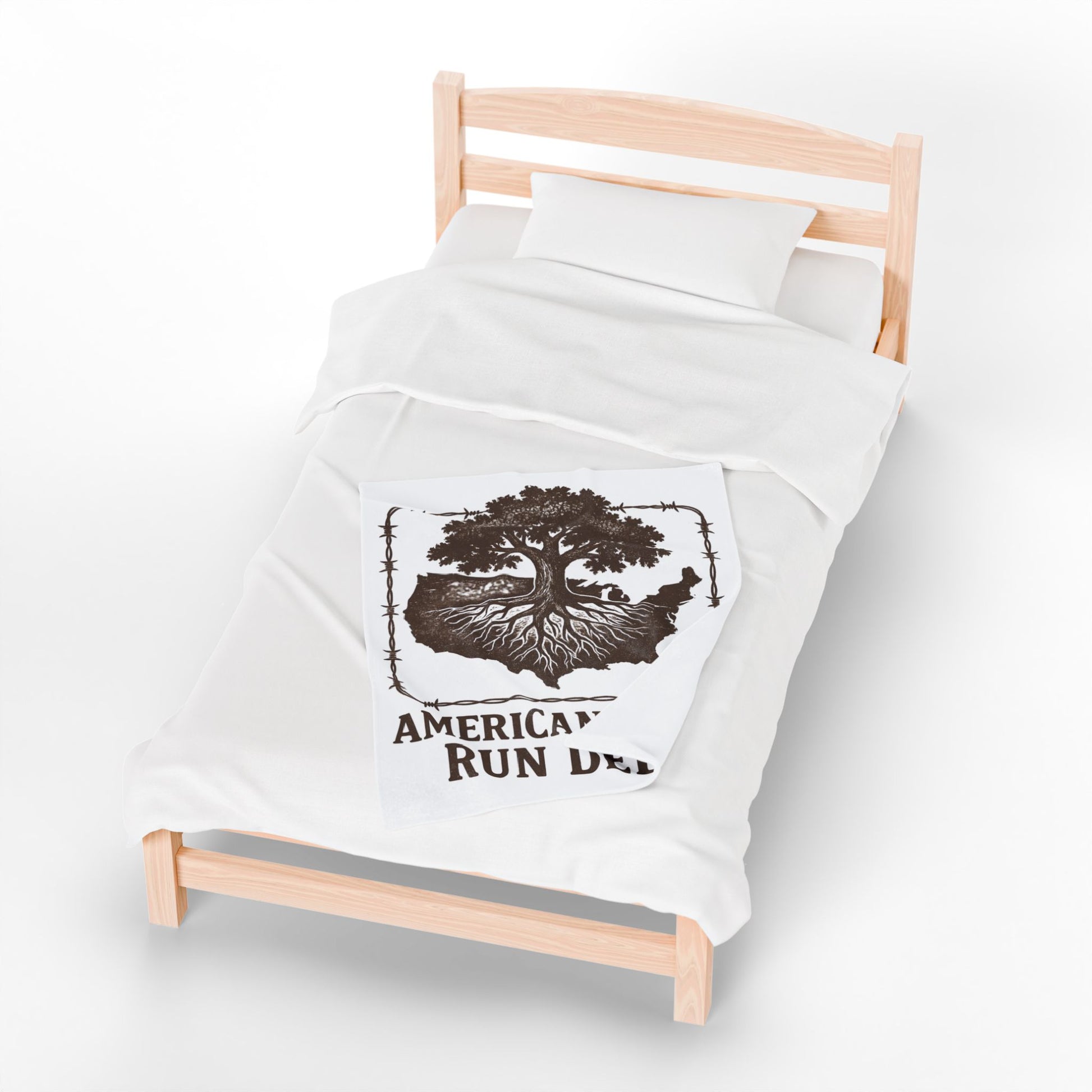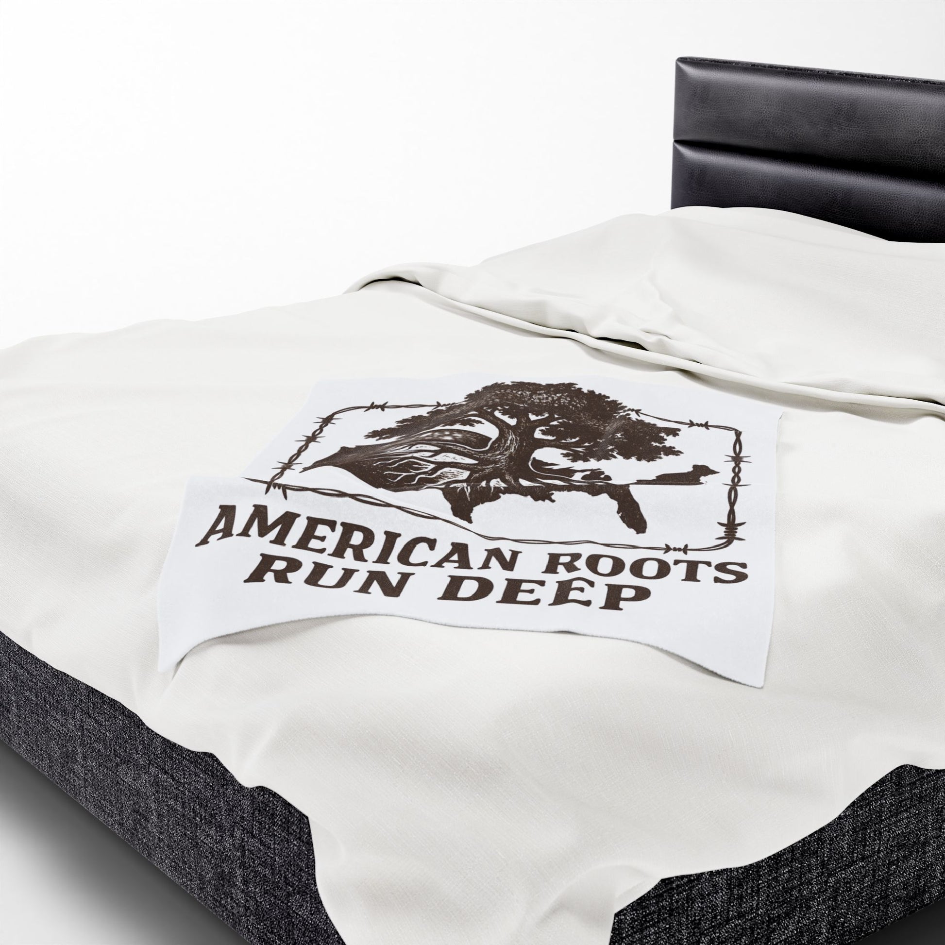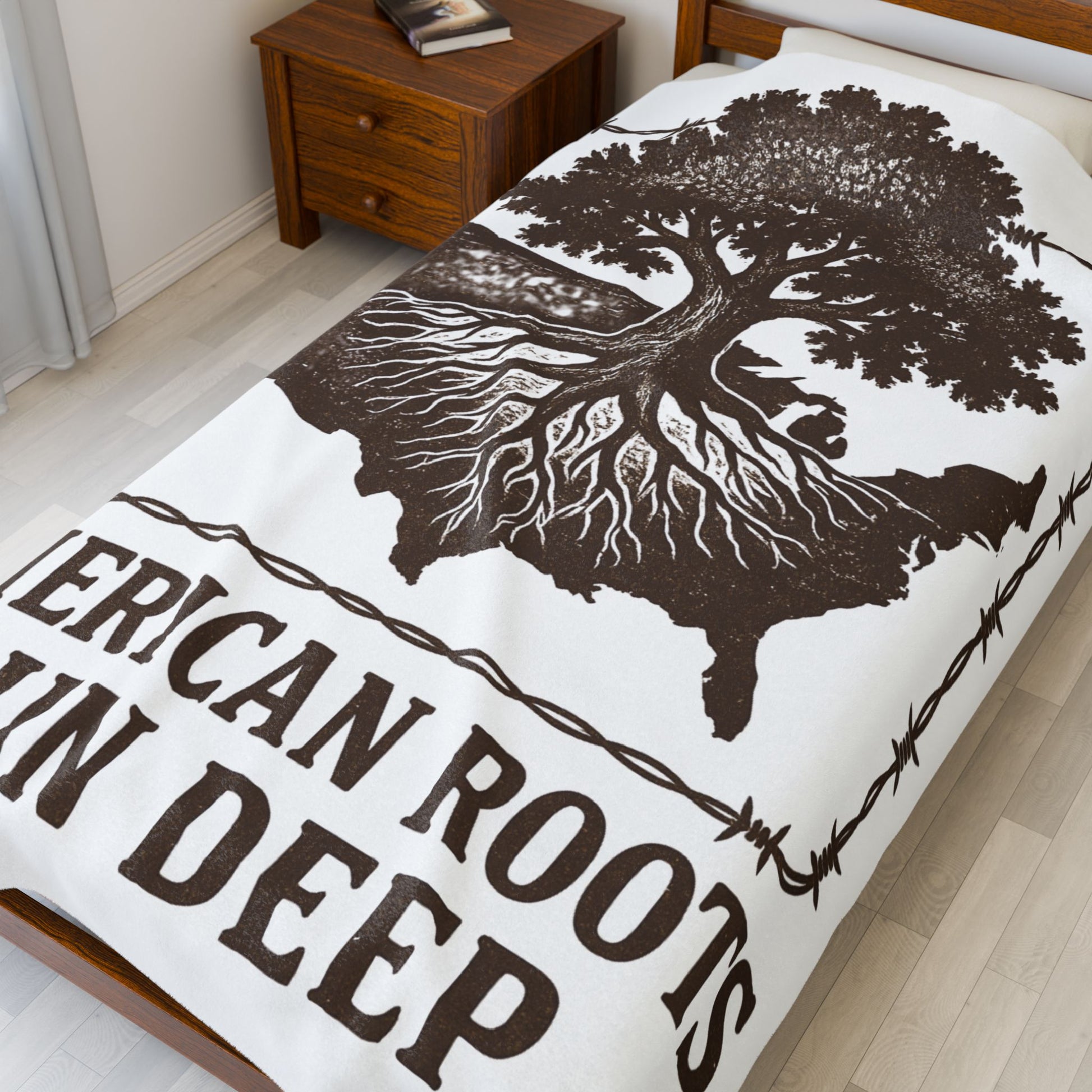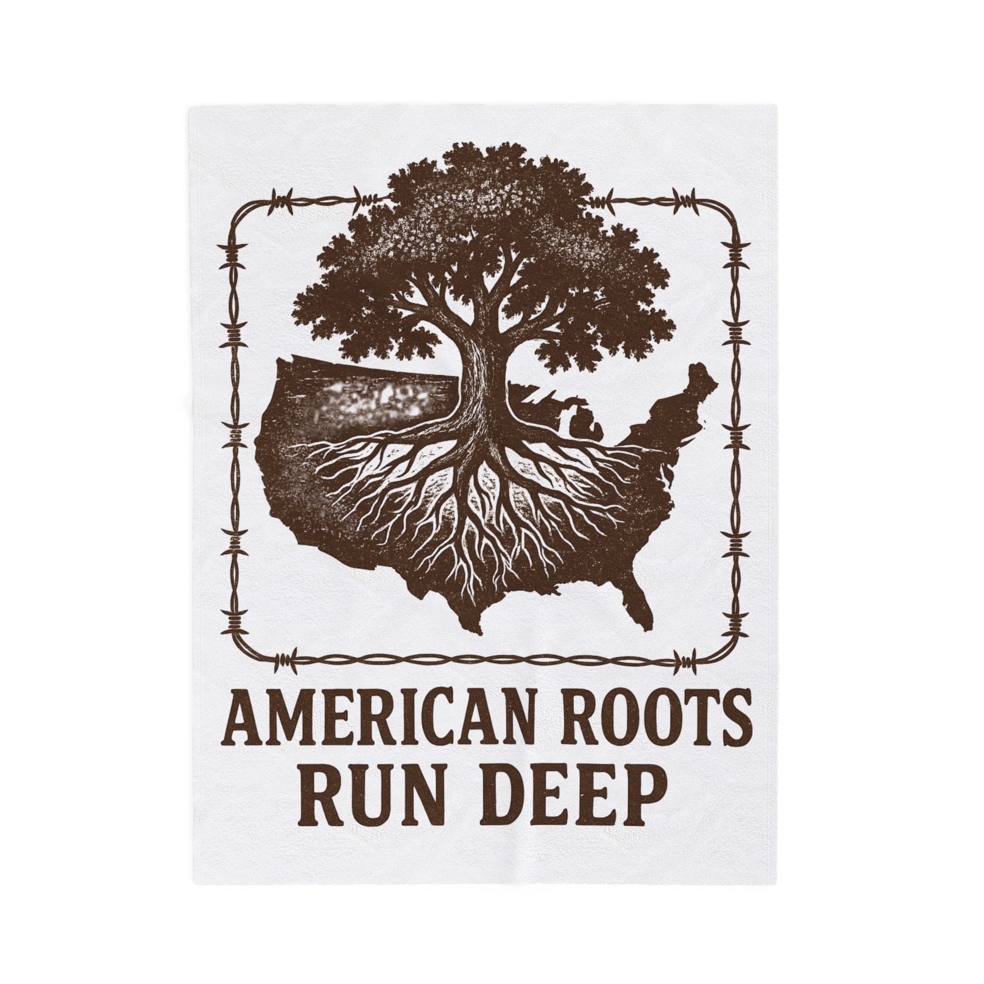 Wrap yourself in warmth and heritage with the “American Roots Run Deep” plush blanket. Featuring a bold tree rooted in the shape of the USA and framed in barbed wire, this velveteen throw is a cozy tribute to the land we love and the values we defend. Soft to the touch and rich in meaning, it’s perfect for your bed, couch, or cabin. Whether you're gifting or keeping it for yourself, this blanket is a daily reminder of where you come from—and what’s worth protecting.